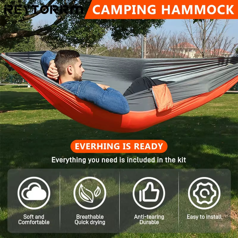 Reytorrm Camping Hammock Single Portable Hammocks with 2 Tree Straps, Lightweight Nylon Parachute Hammocks for Backpacking, Travel, Beach, Backyard, Patio, Hiking 220x100cm